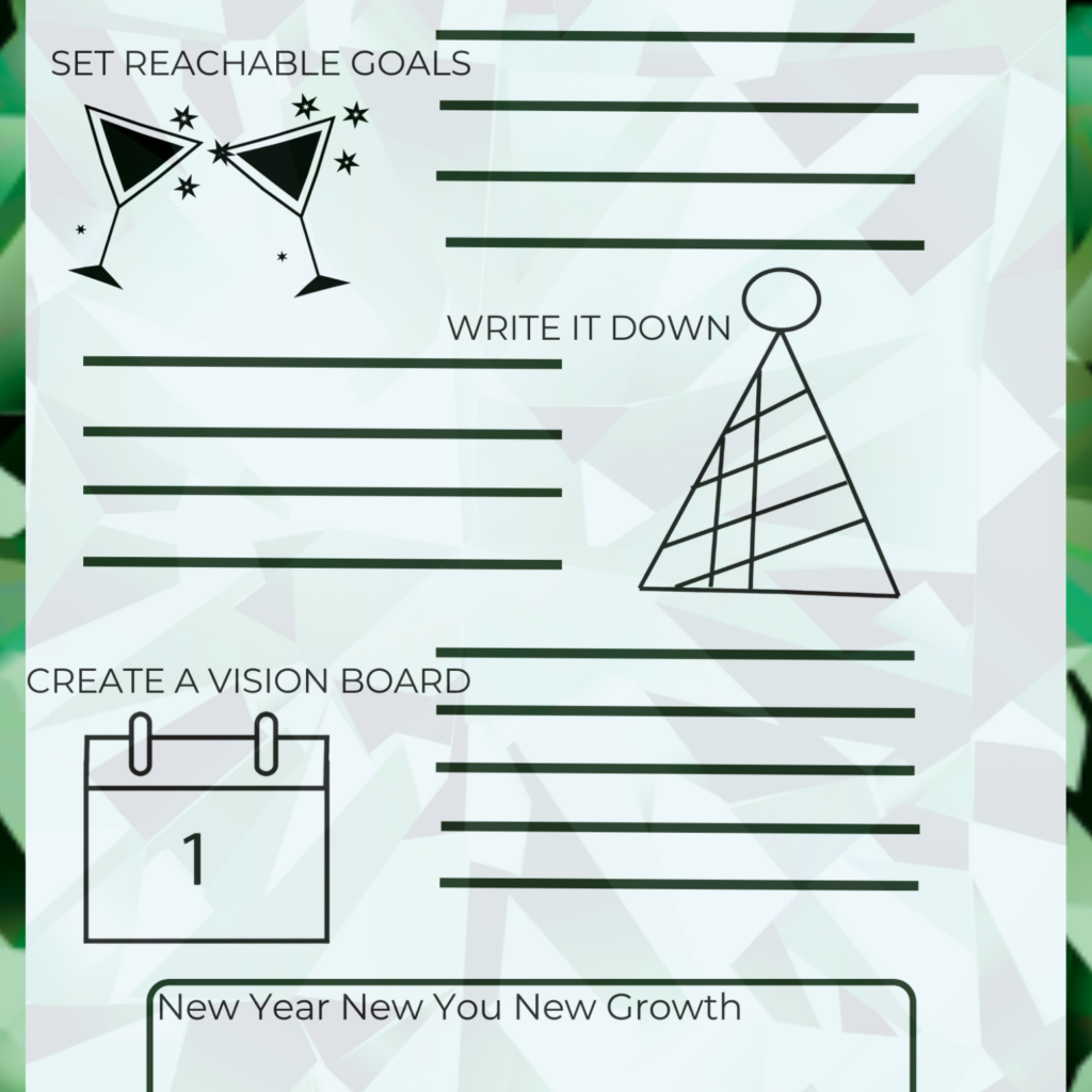 Thirdly, set goals is by using a collage vision board or pictured image board that will include a more colorful spread of images that express your feelings, your goals, and how you plan to reach them. Add a start and end date, that gives you a timeline and reminds you of where you hope to be . The vision board is a visual aid and helps you to see your growth and helps you stay on time, in your goals. Remember if you can see it, you can and will reach it. This is not a race, work in your space and time. Put in the effort to finish what you start. with a simple one paged planner sheet or vision board as your guide.